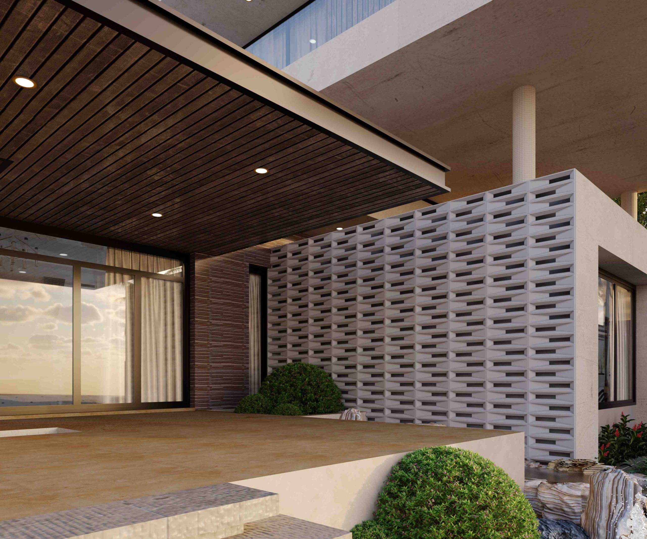 There are three basic materials for covering: wood, metal and ceramic tiles. We had designed this house with panoramic windows, so we only filled it up with functionality.